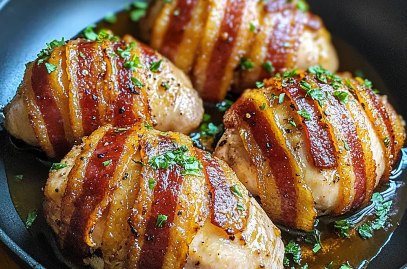 Imagine sinking your teeth into a succulent bacon wrapped chicken breast, where the smoky aroma of crispy bacon dances with the tender juiciness of perfectly cooked chicken. Each bite bursts with a delightful crunch, followed by the savory warmth that wraps around your taste buds like a cozy blanket on a chilly evening, making it an irresistible choice for family gatherings or casual weeknight dinners.