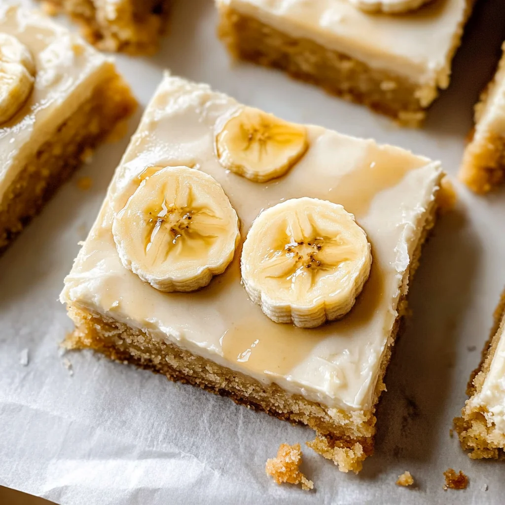 Absolutely! These banana bars freeze beautifully. After they’ve cooled, cut them into squares and wrap each piece tightly in plastic wrap. Place them in a freezer-safe container or bag, and they’ll last for up to 3 months. When you’re ready to enjoy them, simply thaw overnight in the fridge or at room temperature for a few hours.