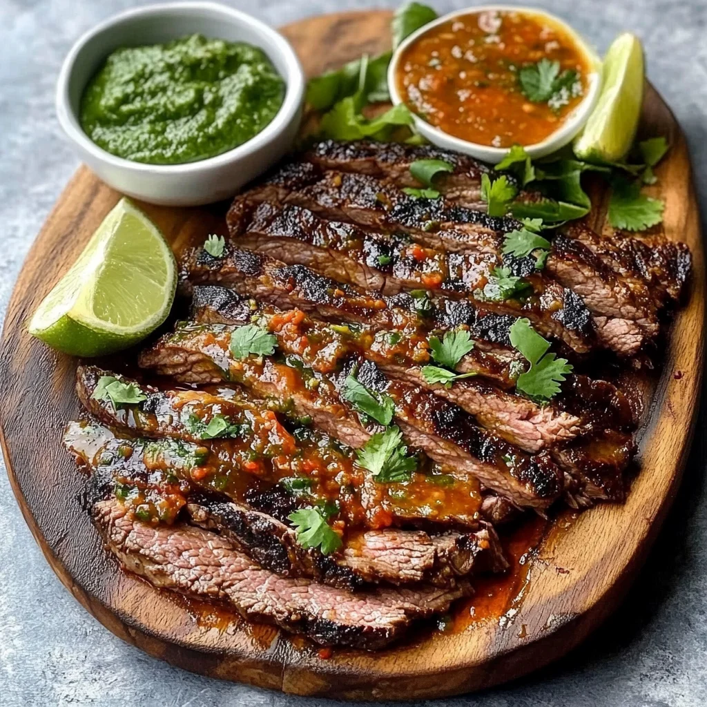 Carne asada is incredibly versatile! Slice it thinly against the grain and serve it in warm corn tortillas topped with chopped cilantro, diced onions, and your favorite salsa for mouth-watering tacos. It also pairs wonderfully with rice and beans or a fresh salad.