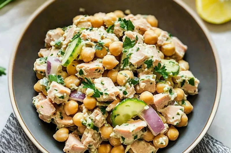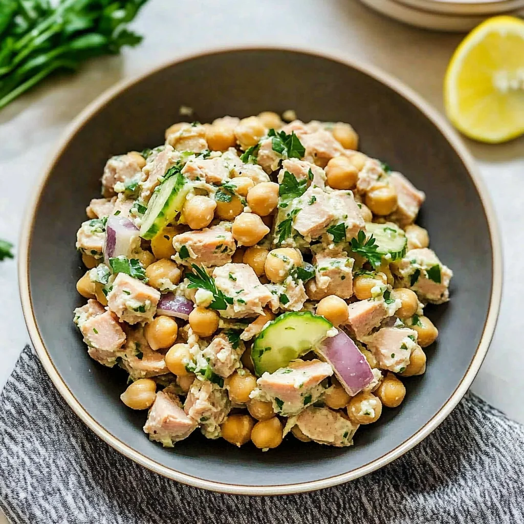Imagine a vibrant bowl of chickpea tuna salad, where creamy textures meet a medley of fresh herbs and zesty lemon. Each bite bursts with the delightful crunch of vegetables and the satisfying heartiness of chickpeas, making it not just a meal but an experience that dances on your palate, perfect for a sunny picnic or a quick lunch at your desk.