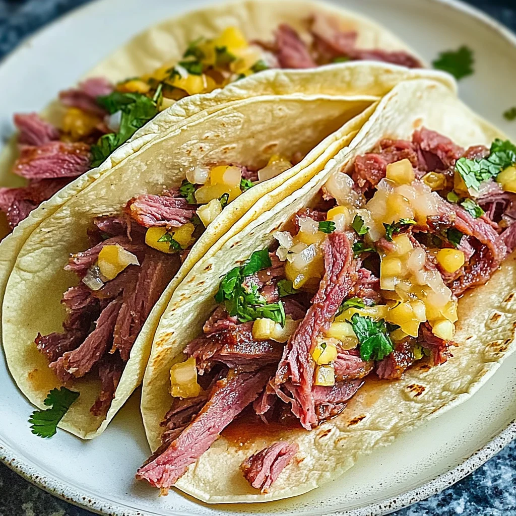 Imagine biting into a warm, soft taco filled with tender, savory corned beef that dances on your taste buds, mingling with zesty cilantro and a squeeze of fresh lime. The aroma wafts through the air, drawing you in like a moth to a flame, promising an explosion of flavors that will take your next taco night to a whole new level of deliciousness.