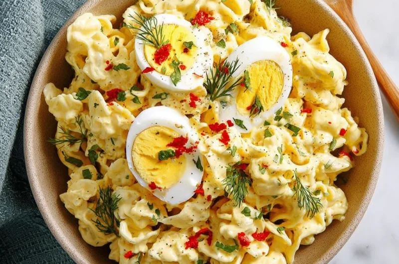 Imagine a creamy, dreamy dish where al dente pasta meets the rich, tangy goodness of deviled eggs, creating a burst of flavor that dances on your taste buds. The aroma wafts through the air, inviting you to take a bite of this vibrant deviled egg pasta salad, perfect for sunny picnics or lively potlucks.