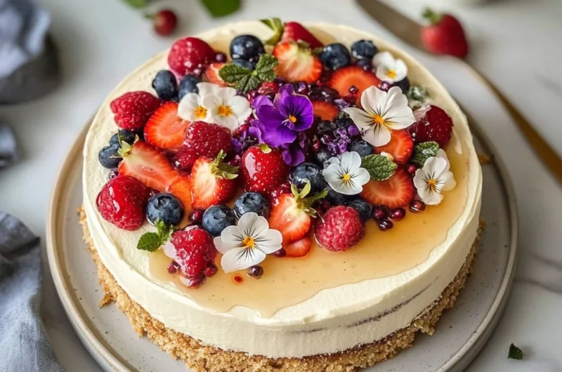 Delightful flavors come together in this cake, where the sweetness of fresh fruits harmonizes with a rich butter base. Visually stunning, it’s not just a treat for the taste buds but also a feast for the eyes, making it perfect for any celebration. Simple to make, with just 30 minutes of prep and common ingredients, this recipe is as accessible as it is impressive. Versatile enough to adapt with seasonal fruits or flowers, it caters to every palate. Crowd-pleasing appeal ensures that your friends and family will be clamoring for seconds!