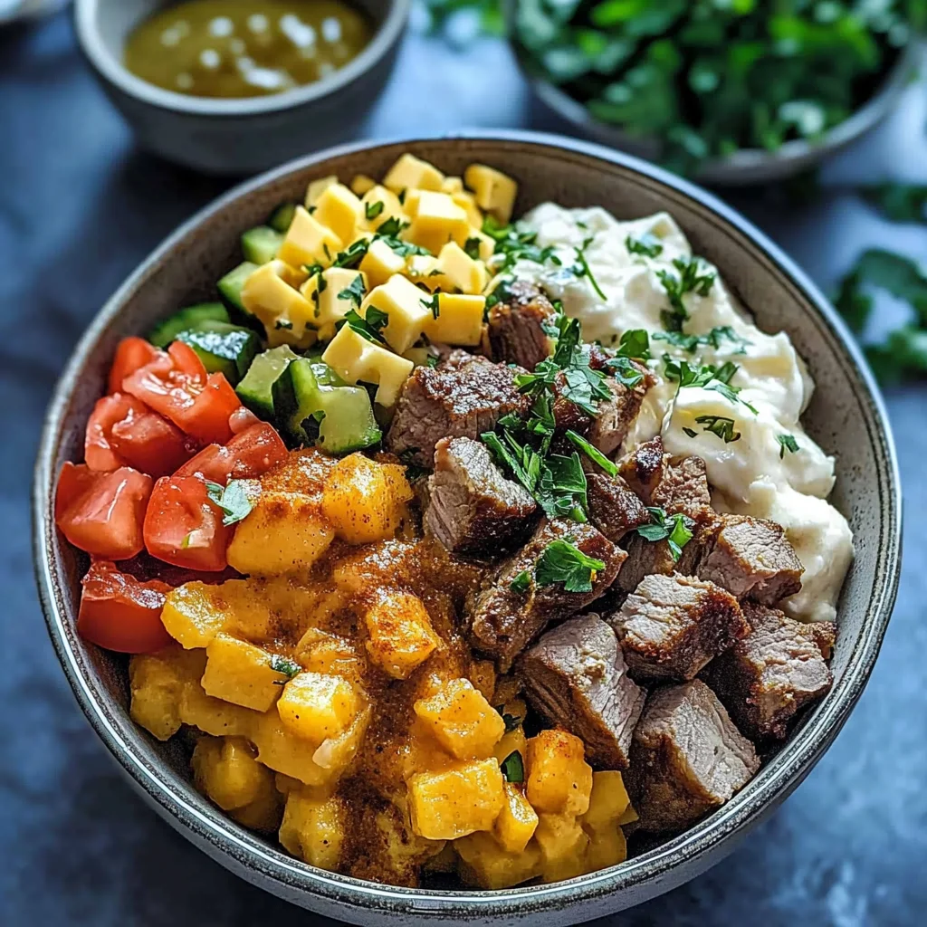 Bold flavors come alive in this hearty dish, combining savory seasoned lamb with fresh, vibrant vegetables. Quick prep time of just 15 minutes means you can whip up a nutritious meal without hassle. Tangy yogurt sauce adds an irresistible creaminess that perfectly balances the spices. Perfect for any occasion, this versatile bowl appeals to both meat lovers and healthy eaters alike!