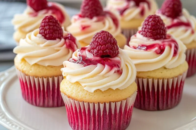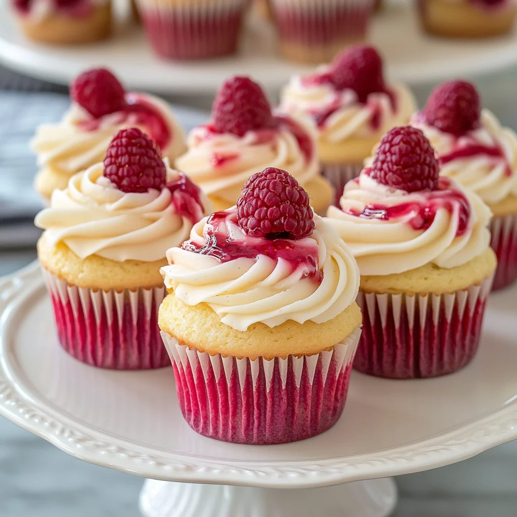 Deliciously moist lemon cupcakes topped with fresh raspberry frosting, perfect for any occasion.