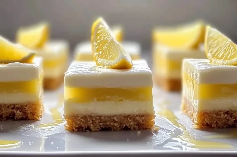 8. Cut and serve: Once set, cut into bars and serve chilled. For an extra touch, garnish with additional lemon zest before enjoying!