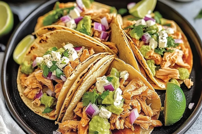 As I recall those chaotic weeknights filled with homework and hurried schedules, these slow cooker chicken tacos became my family’s go-to meal; they were not just food but a delicious hug on a plate. Whether it’s Taco Tuesday or simply a craving for something comforting, each bite promises an explosion of flavor that will have everyone asking for seconds, leaving you both satisfied and eager for the next round of taco night.